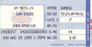 If you judge my love of the New York Mets by my first Shea Stadium experience, then it’s no wonder I’ve been a fan for twenty-five years now.  In fact, I don’t really know what it’s like to start following a team when they are really bad, considering that the three pro teams I’ve followed since I was a kid–the Mets, Giants, and Rangers–were all competitive in the mid-1980s.