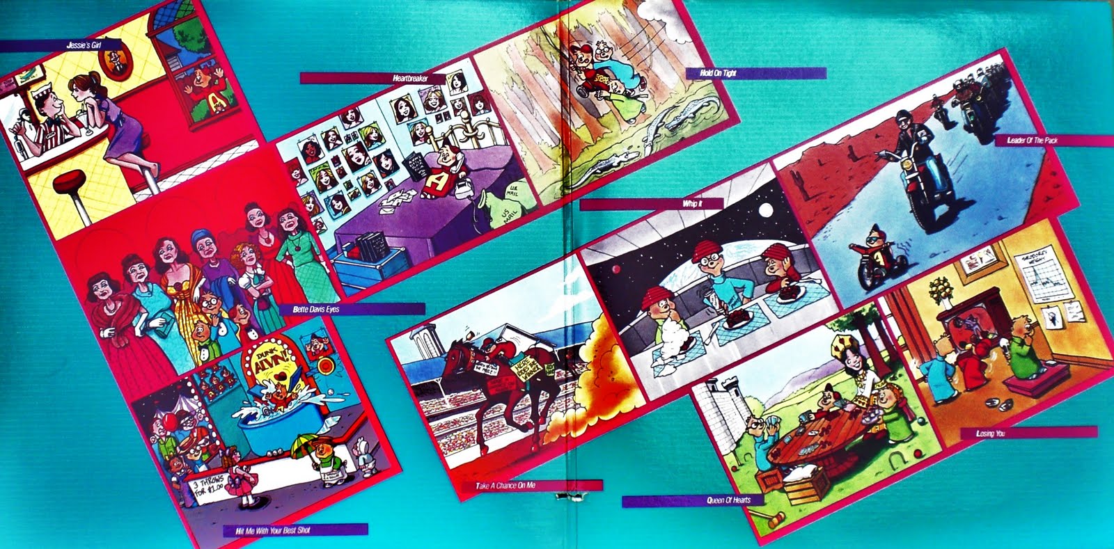 Released in 1982, Chipmunk Rock is a collection of late 1970s and early 1980s hits as well as a few classics, such as “Leader of the Pack,” with a cover featuring Alvin taking his place among the presidents of Mount Rushmore (a nod to Deep Purple’s In Rock album) and the jacket opened up to show the group in situations that reflected the song titles. My personal favorite of all of the tracks on the LP was the Pat Benatar hit “Heartbreaker.” There’s something about a chipmunk shredding a guitar solo that pumps the adrenaline of a second grader. Combine that with Rick Springfield’s “Jessie’s Girl” and Kim Carnes’ “Bette Davis Eyes” and I, as well as any kid my age back then, was ready to strap on a guitar, throw on a headband, and freaking wail.