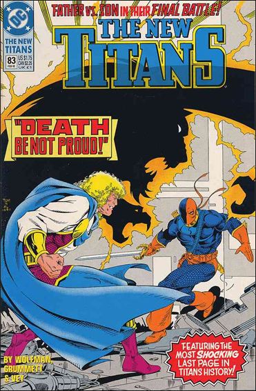 However, it didn’t, and through the first few issues of Deathstroke: The Terminator, we found out that Deathstroke had killed his son, which wasn’t really that big of a spoiler because anyone who was paying even a little bit of attention to the story knew that’s was where it was headed (to the point where they made it the end of the second of the three-parter). But the Titans were given the cover of Who’s Who #14, probably in a triumphant return to their former glory, and that hit shelves in October 1991, whereas New Titans #84 would come out in January 1992. The last three paragraphs of the Titans entry reads: