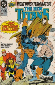 Issue 86 promised that, as the cover showed Nightwing fighting Deathstroke with teasers like: “This issue! Nightwing vs. Terminator! –And only ONE shall lead!” This was enough to get me really hped when I snatched it off the comic store shelf and I am sure that I was so eager to read it that I rode my bike straight to the public library one block over and read it at a table instead of waiting the extra five minutes to get home.