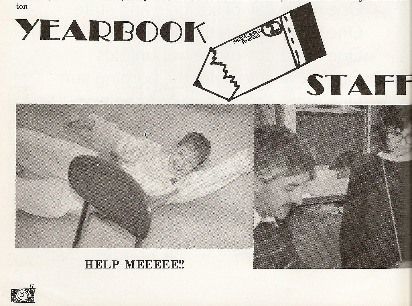 The bottom half of the yearbook staff spread. Layout, caption, Broadway font, and badly drawn pencil courtesy of yours truly.