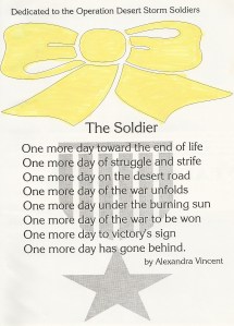 The first page of my eighth grade yearbook, featuring a special poem and yellow ribbon dedicated to the Operation: Desert Storm troops. We had to color in each yellow ribbon with highlighters the day the books came in.