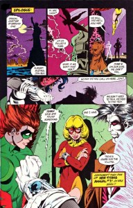 So I had nothing better to do with my time except read comics and watch TV and I was able to get my sister to go to the comic store and pick up my reserved books a few times.  She came home one Wednesday with New Titans #79 and soon I’d get New Titans Annual #7, which came out more or less a couple of weeks later and thankfully that annual would explain who the people in that above exchange were, or else I would have been completely lost.  I twas also the best way for the book to get involved with the annual crossover that DC had been running at the time, which was Armageddon 2001.