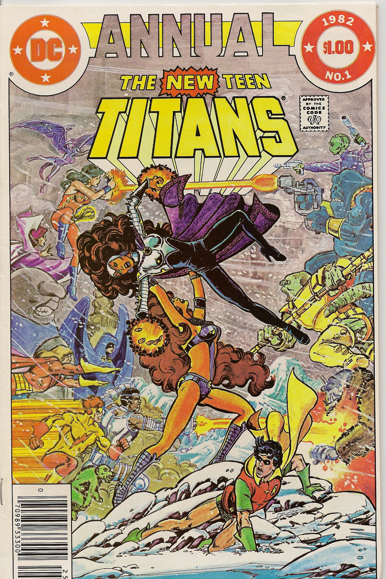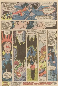 The fight at the end of the storyline is honestly worth the price of admission here, as both have similar powers (except that Blackfire can’t fly, which means that she’s “disabled” as far as Tamaraneans are concerned and the major reason that she was shunted into the background by her parents all her life while Starfire was the pretty, pretty princess that everyone loved) and spend the better part of the Annual beating the shit out of one another. Wolfman expertly has Komand’r seemingly fall to her death but never shows a body, just in case he decides to bring her back (and he will) and at the beginning of issue #26, the Titans finally head home to New York.