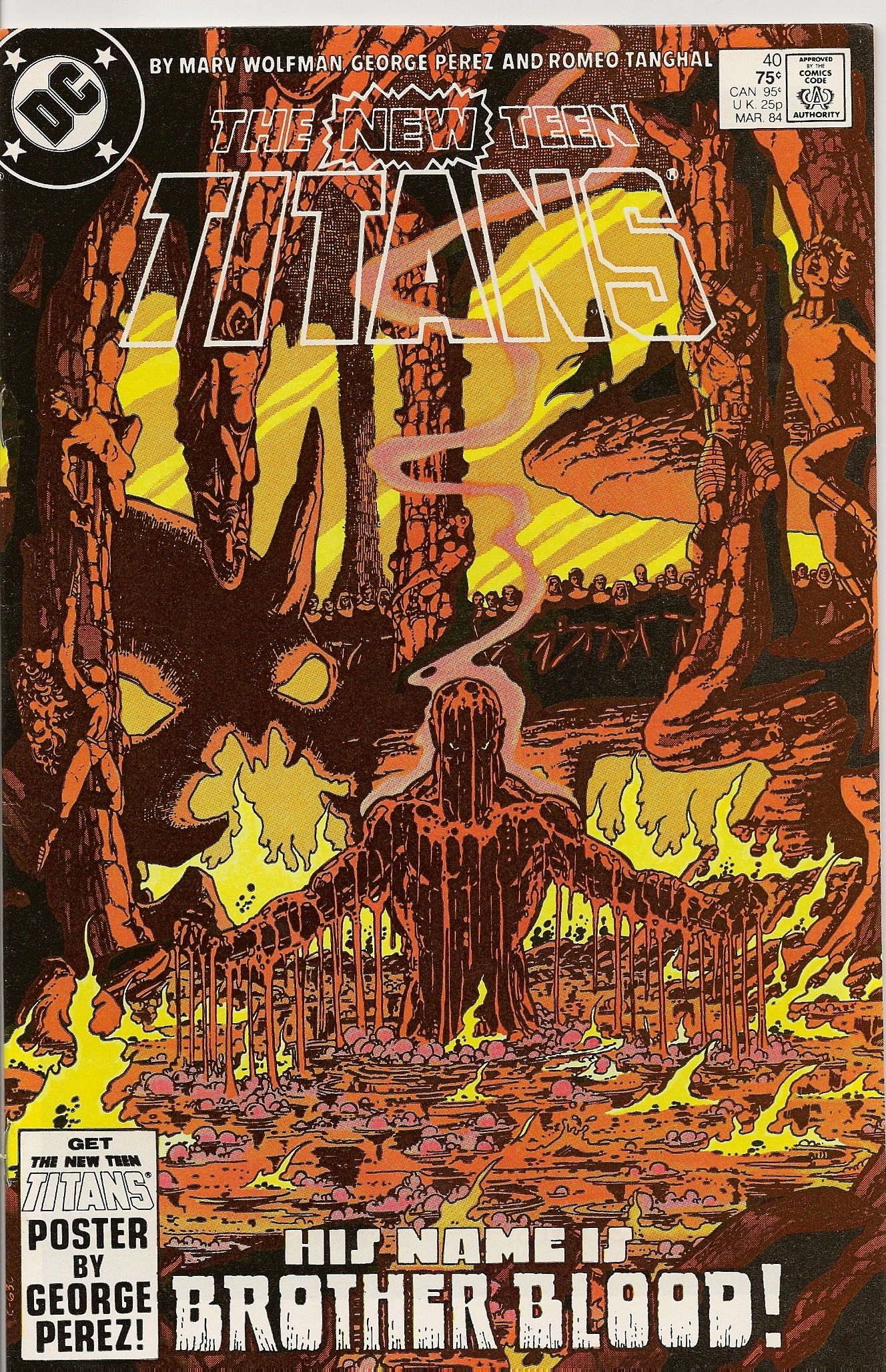 This all informs a Brother Blood subplot that finally is resoved in New Teen Titans #40/Tales of the Teen Titans #41 where Blood captures Dick Grayson, brainwashes him and tries to get him to kill the Titans. It’s his love of Kory that ultimately wakes him up and he frees his teammates while the armies of the Zandian government–another enemy of Blood–close in and lay waste to his compound, seemingly killing him.
