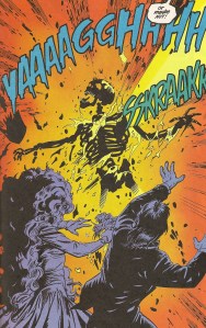 But if you look at the foil-embossed cover, which is all nice and rainbow-reflective when you hold it up to the light, Dick and Kory weren’t exactly on their way to wedded bliss. The Grummett/Vey cover (their very last on the title) shows an unmasked Dark Raven looking excessively sunburned and wearing an outfit that is something out of a bad S&M fantasy holding both the bride and groom while the Titans plus guest stars Robin and The Flash look on. It’s a revelation of a villain whose big “reveal” we would have expected to have to wait for during the issue but I guess considering that the average Titans fan had figured out that the cloaked figure who’d made out with Liz Alderman and brought us the Deathwing (seriously … Deathwing?) for the past few issues was Raven, so at least we weren’t left feeling insulted, and we were teased from the shelves by what promised to be a decent fight.