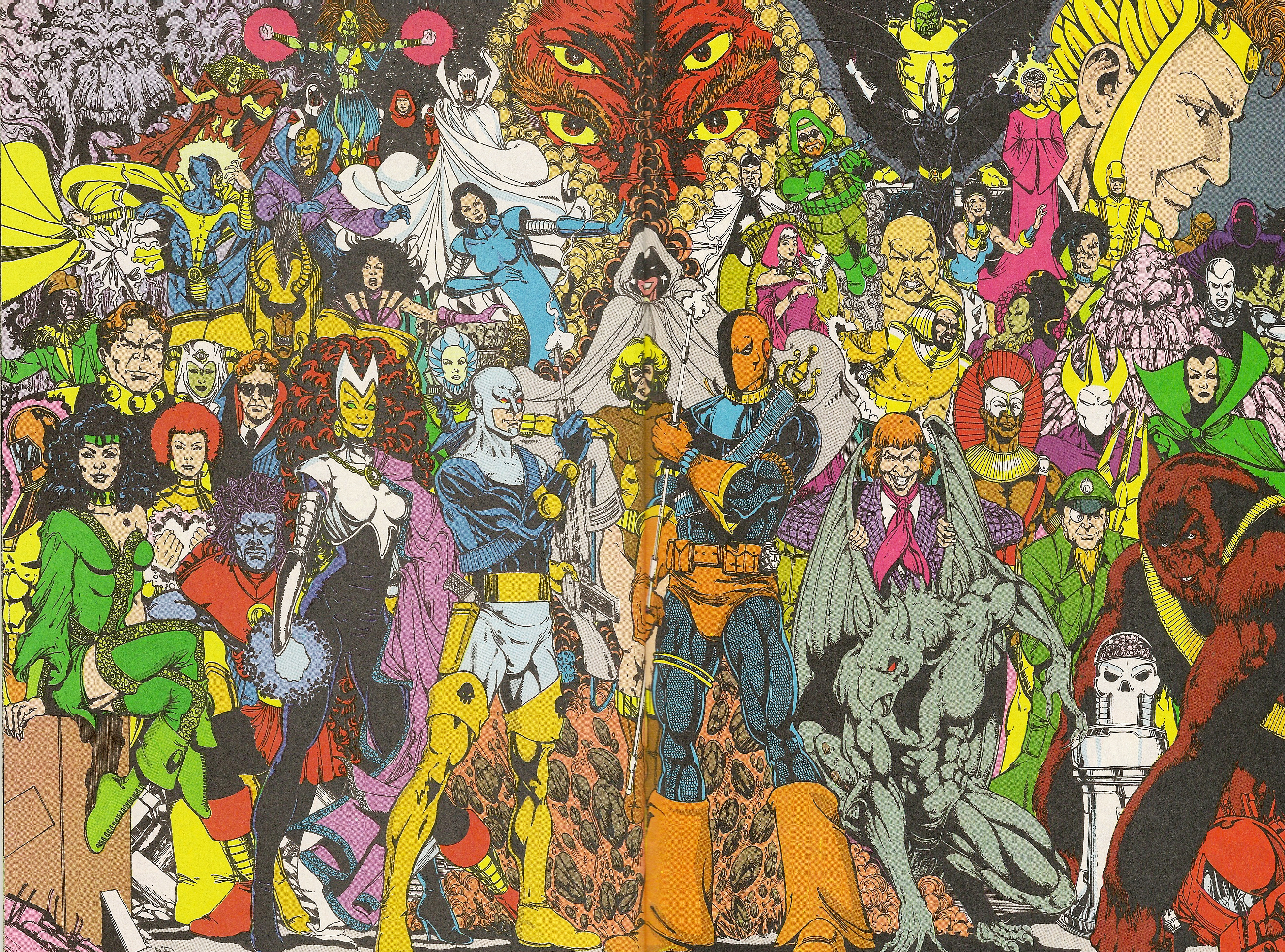The other two pinups represent the best and worst of this title and comics at the time. Near the end of the book is a two-page spread of Titans villains drawn by Phil Jimenez, who was still on Team Titans at the time. It was and still is absolutely gorgeous and shows just about every single Titans adversary going back to the team’s 1960s beginnings in The Brave and the Bold. It has that old-school, George Perez feel to it and makes you wish that the editors could have gotten Perez to contribute at least something to the issue, although it’s my understanding that at the time Perez wasn’t doing much mainstream work and didn’t have the best relationship with DC after the failure of War of the Gods. But Jimenez has always been a good artist and I love this acknowledgement of the team’s rich history.
