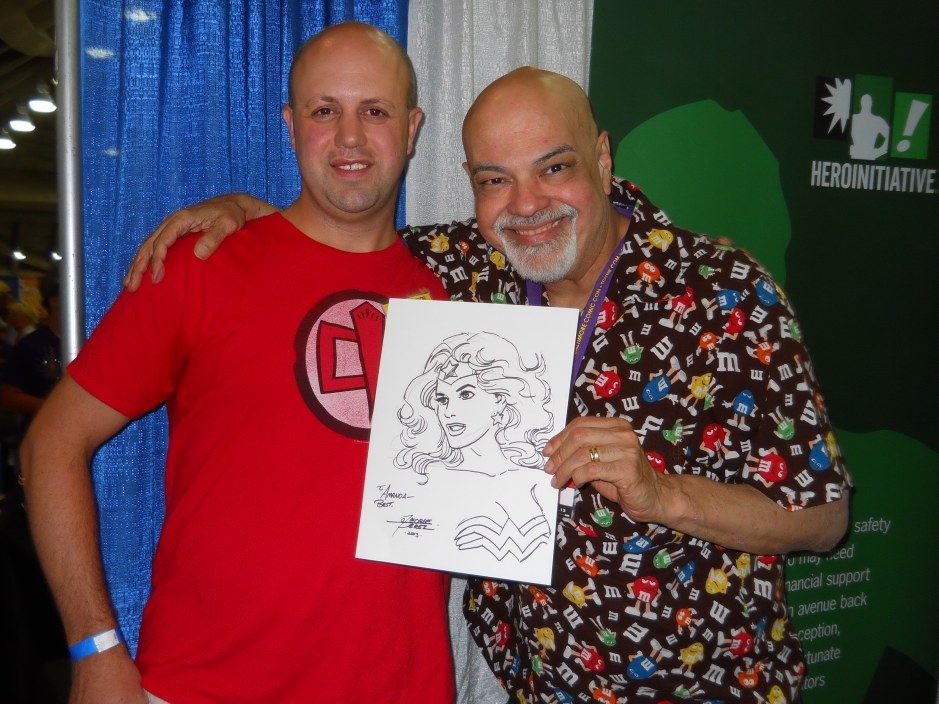 Me, George Perez, and the Wonder Woman sketch I gave to my wife.
