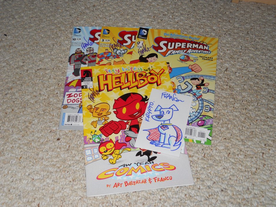 DSCN4309 ← Previous Next → My haul from the Franco/Baltazar table, including a sketch of Krypto for my son.
