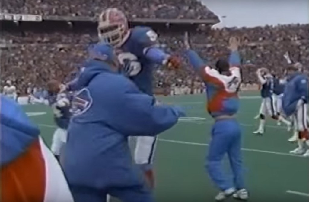 The best part of this segment, though was what I screencapped above, which was the first round game between Buffalo and the Houston Oilers. Until the Minnesota Vikings overcame a 33-0 score to beat Indianapolis in 2022, this was the biggest comeback in NFL history and remains the biggest comeback in NFL Playoffs history. Going into the second half, the Bills were down by 32 points and were being quarterbacked by Frank Reich, who had replaced Jim Kelly late in the season after Kelly went on the DL (he’d return in the Super Bowl but I think left the game with an injury). To watch the highlights of this was phenomenal, especially considering that the Oilers had Warren Moon, who up until Buffalo started their comeback, was absolutely perfect.