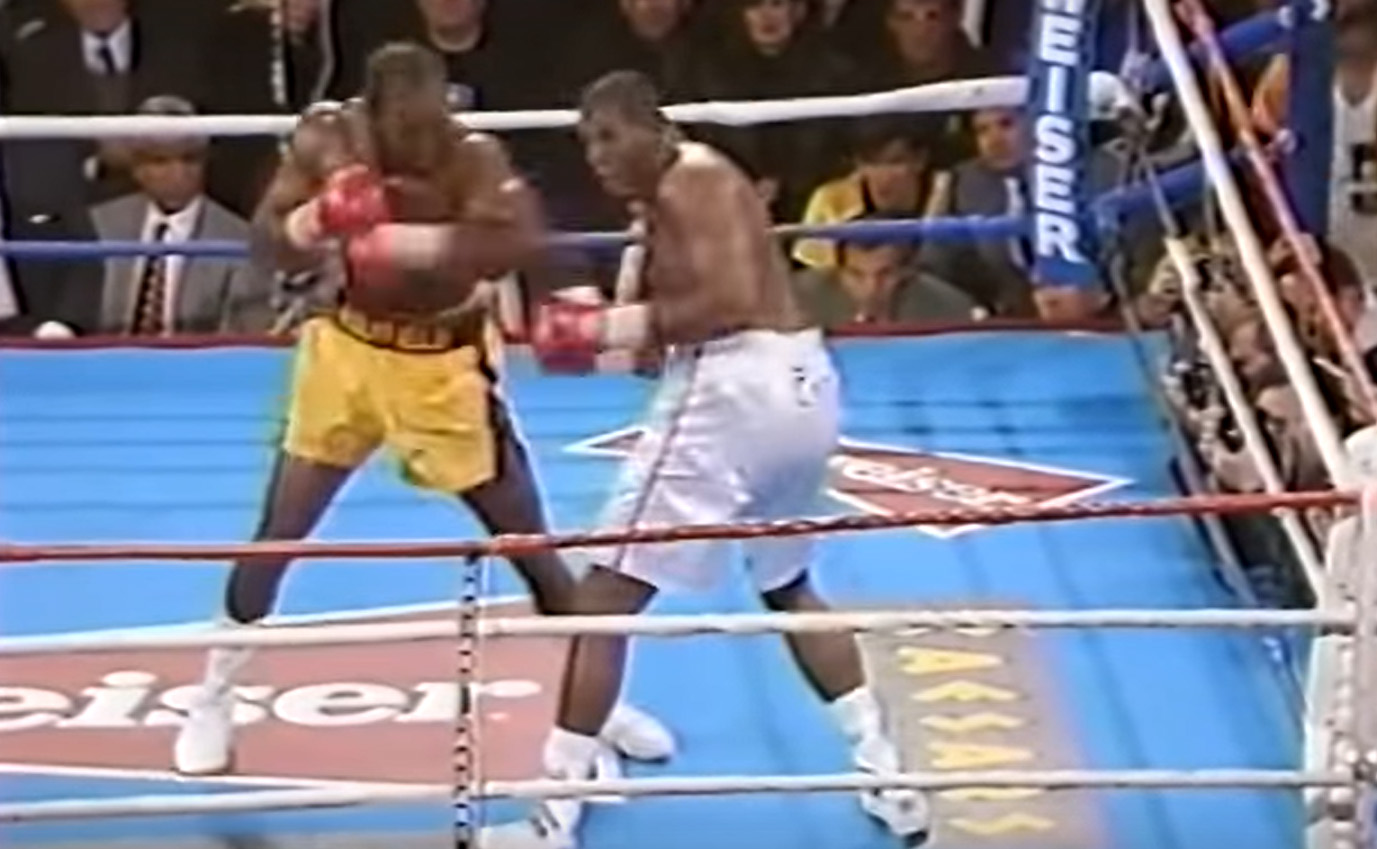 Then, I was surprised by boxing highlights. I had completely forgotten how huge boxing used to be. These days, I don’t follow any of it and I’m pretty sure it’s been eclipsed by UFC (which I refuse to watch), but the 1990s were one of the last decades of boxing’s prominence in the sports world. And in this segment, we have Lennox Lewis, George Foreman, and Rocky V‘s very own Tommy Morrison. The biggest match, though, is Evander Holyfield beating Riddick Bowe for the heavyweight championship, a fight that was interrupted by a guy who parachuted into the arena, something that was parodied on The Simpsons: