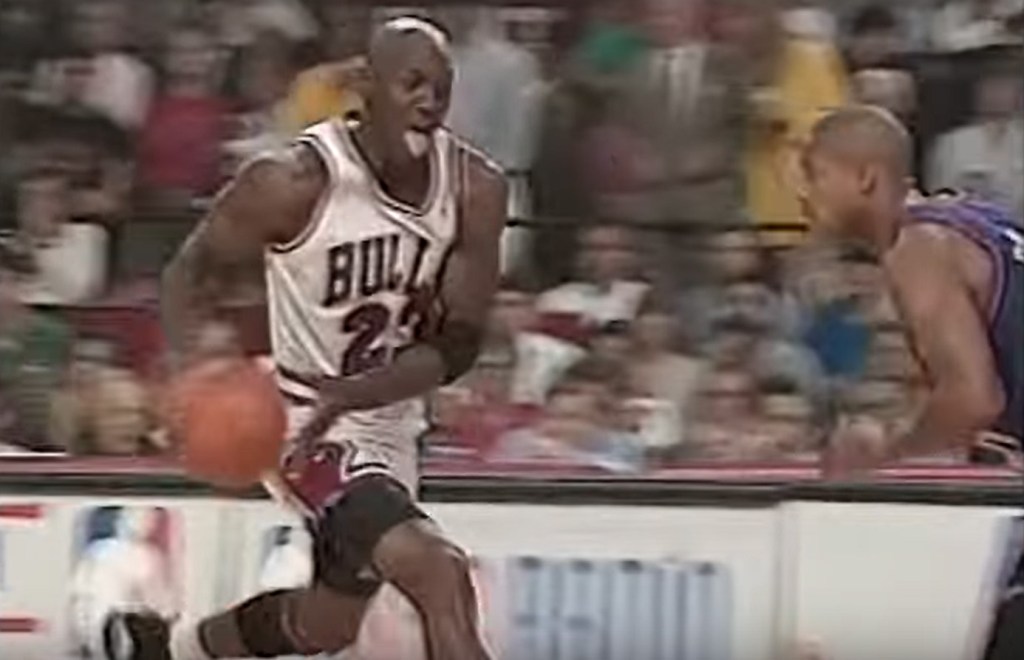 The second thing from that segment that stood out to me is that the Bulls would go on to play Charles Barkley and The Suns in a really good series, which included a triple overtime game three. The Suns won that game and then the Bulls won game four as, according to our narration, “Jordan responds like a champion.” Of course, we now know he took the loss personally.