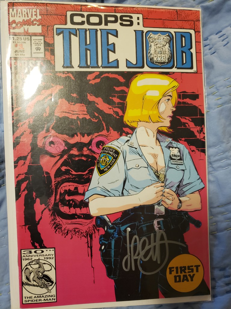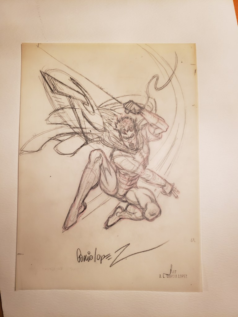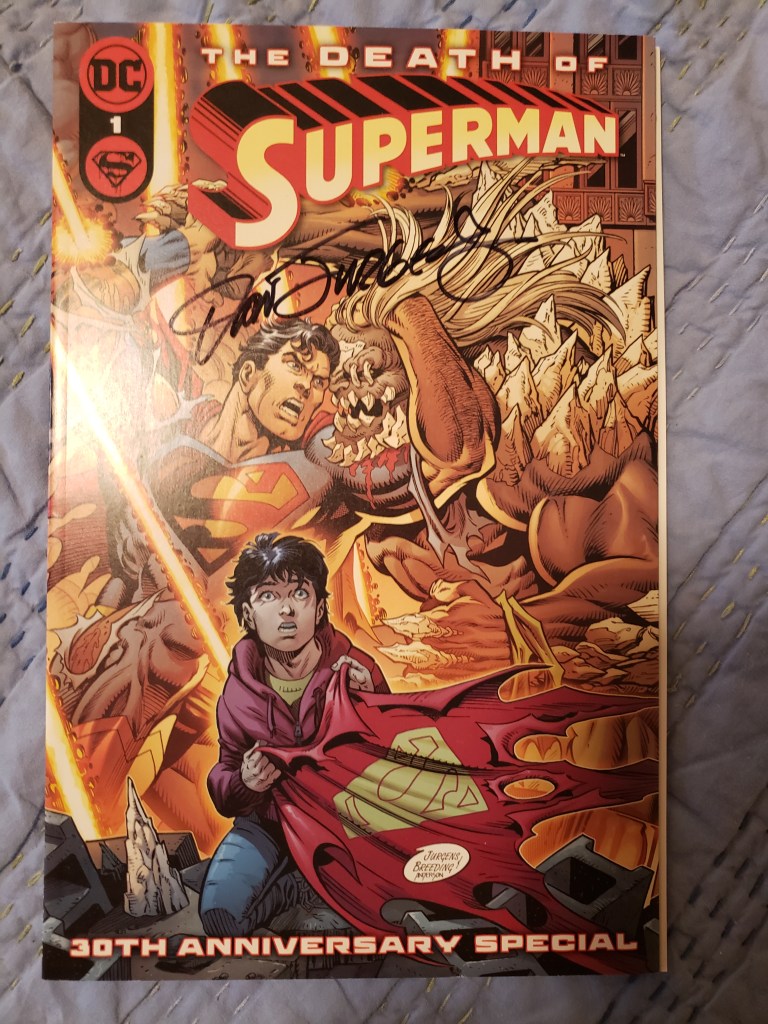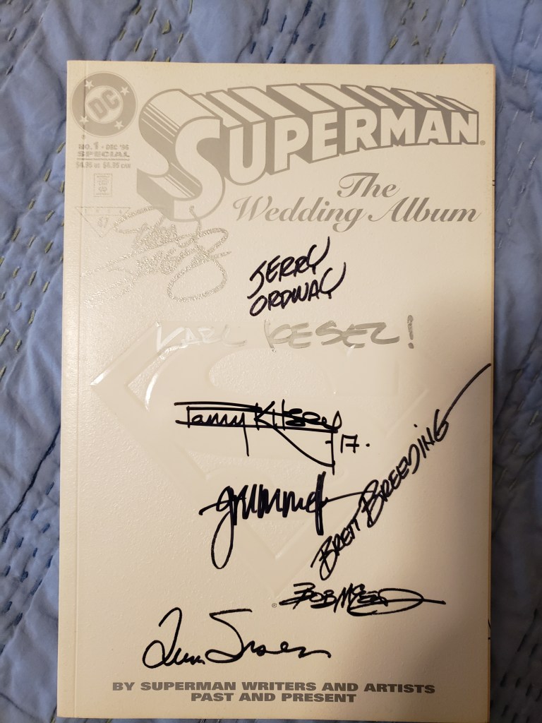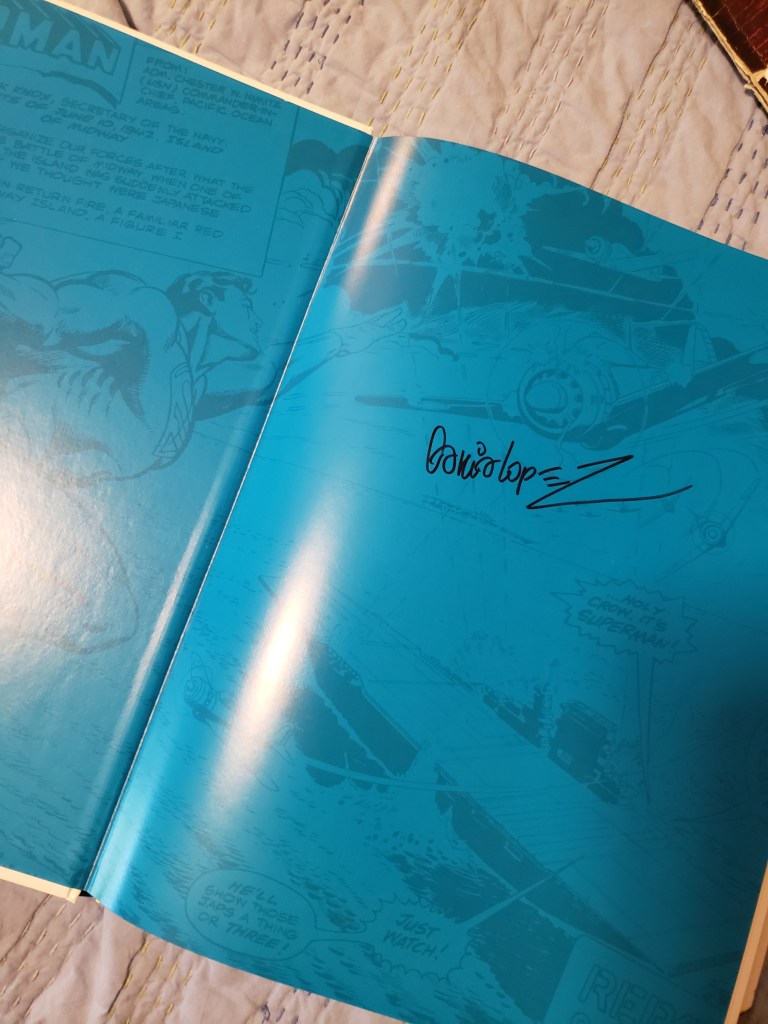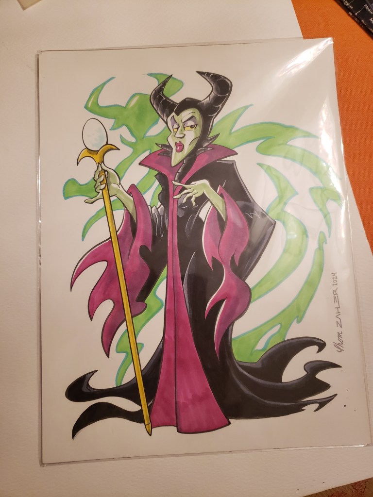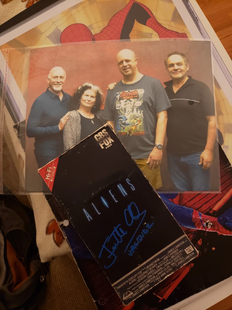 Throughout the show, I got several books signed and also bought a couple of pieces of really cool artwork. Included in this gallery are comics and Who’s Who entries signed by Dan Jurgens, Jose Luis Garcia Lopez, Art Adams, Jimmy Palmiotti, Michael Golden and Terry Moore. Plus, check ou tmy VHS copy of Aliens signed by Jeanette Goldstein (Vasquez), the Robin artwork I bought from JLGL, the Jonah Hex sketch from Jimmy Palmiotti, and the amazing Maleficent drawing from Thom Zahler!