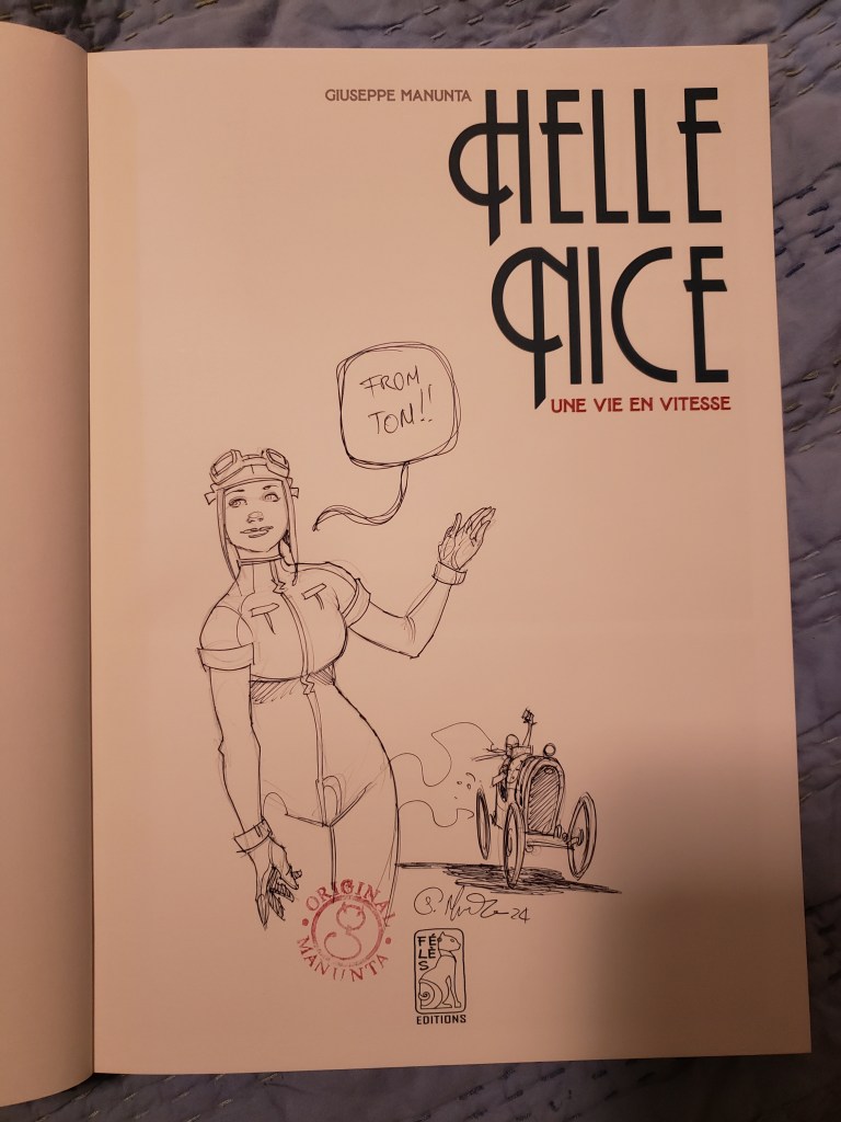 First, there’s Guiseppe Manunta, whose graphic novel Helle Nice I picked up (and had signed–with a sketch!).