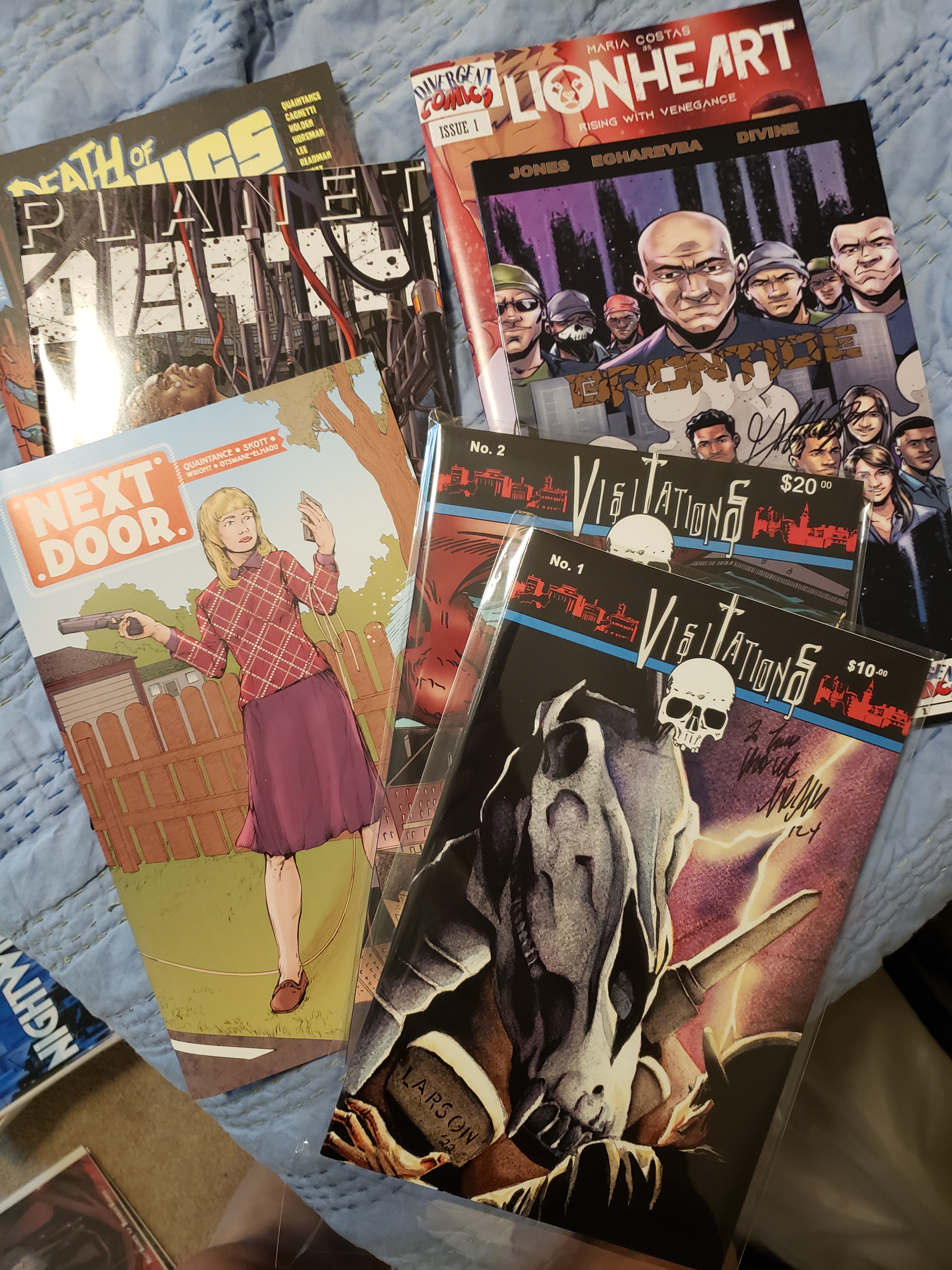 I also had the chance to talk to creators at Divergent Comics and Comics Bookcase as well as Scott Larson, creator of Visitation. Here’s links to where you can find them: