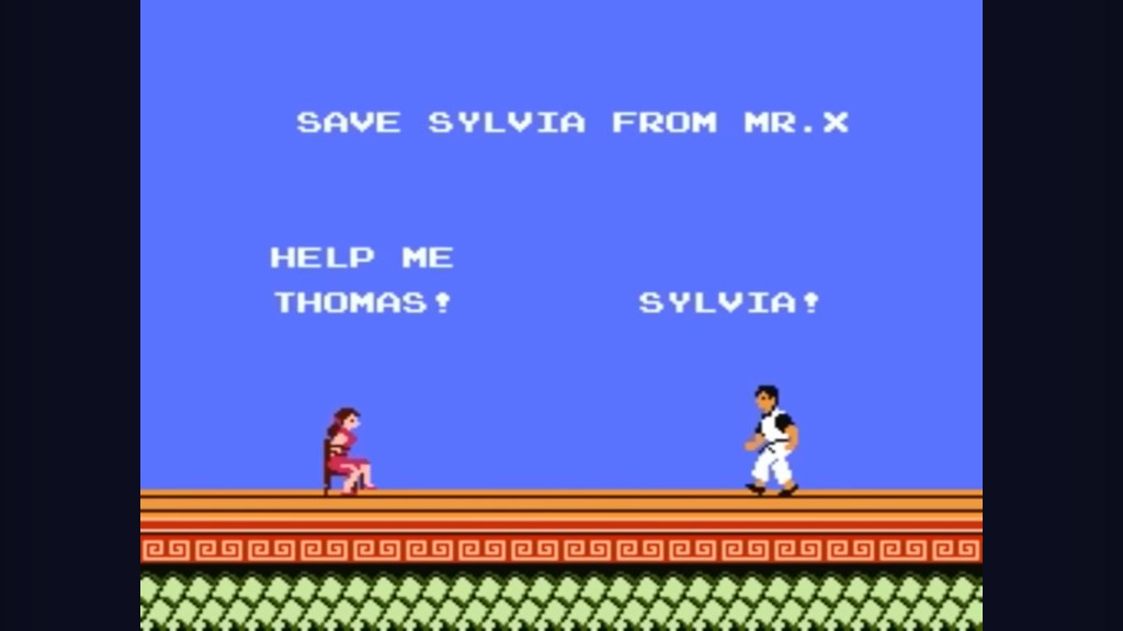 5. Kung Fu. Among the first few games that I got for my birthday with my NES Action Set was Kung Fu, the karate game where you played a guy named Thomas whose girlfriend Sylvia was captured by the big bad named “Mr. X.” and you had to fight your way through the levels of his house Game of Death style. You didn’t have any weapons–just punches and kicks–and you encountered other Kung Fu bad guys, like karate warriors, little people who hugged your legs (seriously, they were annoying), knife-throwers, and a mini-boss on each level. In fact, aside from Super Mario Bros., I think this was the first game that I ever played where each level had a mini-boss.