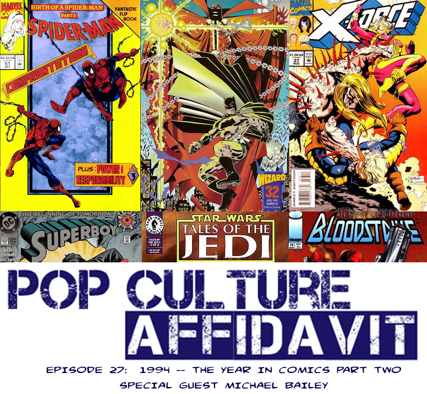 Episode 26 CoverAs my look at 1994: The Most Important Year of the Nineties continues, it’s time to take a look at the comic books.  Joining me for this endeavor is Michael Bailey of Views from the Longbox (among other podcasts).  In this two-parter, we’re going to talk about the comics industry of the 1990s, what the big releases were in 1994 as well as what our favorite books were that year.