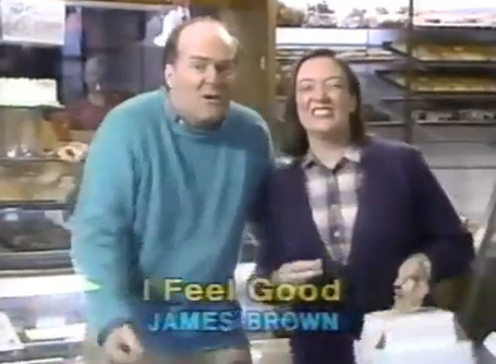 “I Feel Good” is the first song mentioned in the commercial and that’s definitely appropriate because the album is called Feel Good Rock. Here we have two people who are either at a bakery or are getting ready to tape tomorrow’s episode of Supermarket Sweep and they are just really into it. Either that, or the woman is having a stroke. Either way, I’m pretty sure that this commercial became famous in the house to the point where every time it was on, Dad would call the kids into the den, yelling, “Hey, the commercial’s on again!”