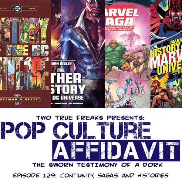 When you start reading comic books decades into a character or even an entire publisher’s existence, how do you go back and find out all of the stories that got them to that point, especially when it’s 1991, you’re fourteen, and you don’t have money, a car, or the Internet at your disposal? Well, join me as I talk about how I learned about Marvel and DC’s histories through their “official” history accounts: The History of the DC Universe, Marvel Saga, The History of the Marvel Universe, and The Other History of the DC Universe. Plus: listener feedback!