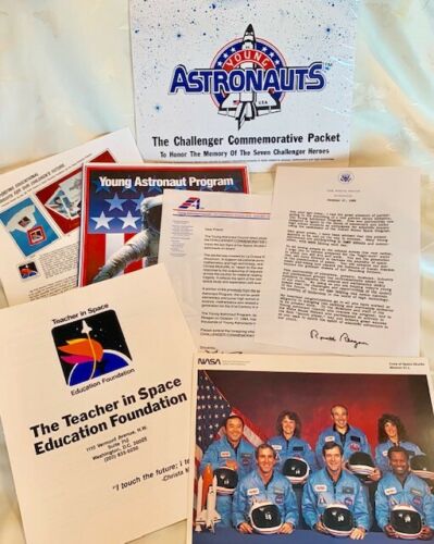 Later that year, we received Young Astronauts commemorative packets. These had 8×10 pictures of the crew, Christa McAuliffe, and the shuttle lifting off; two stickers with the Teacher in Space Program and the official mission logos; a letter from President Reagan; and a poster with a picture of the shuttle and the poem “A Salute to Our Heroes”. That poster hung on my bedroom wall for a few years and I even bought a Revell space shuttle model kit because I really wanted a space shuttle toy but couldn’t find one. It sat in its box for a few years before I made a poor attempt at putting it together. We had a moment of silence on the one-year anniversary, but then the Challenger faded from consciousness and conversations—that is, when we weren’t making tasteless jokes like “What does NASA stand for? Need Another Seven Astronauts”. We turned our attention to movies where humans were fighting aliens in space, and the shuttle program went into in limbo.