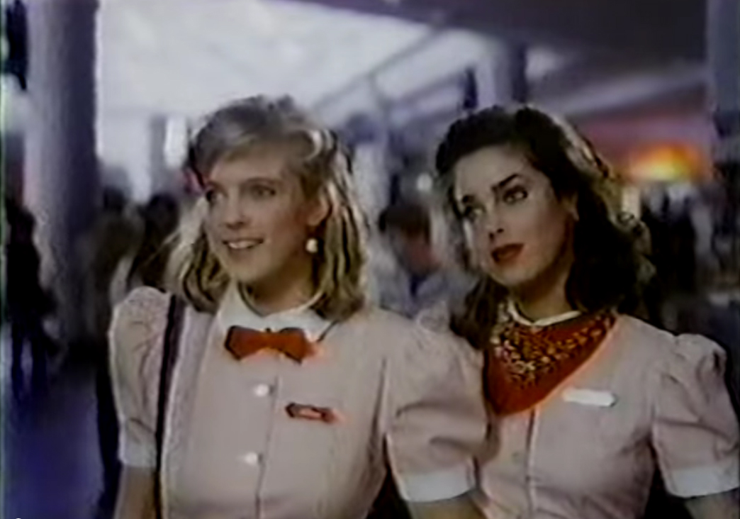 We then switch to Cattle Burger, which is in the mall and which I guess was a way to have Stacy and Brad work in the same general area so that there could be interaction at times (All-American Burger in the film was a free-standing fast food joint away from the mall, where Stacy worked at Perry’s Pizza) and Brad wonders aloud if Linda would ever go out for him. Brad’s boss (who is played by Paul Wilson, who would be a semi-regular on the later seasons of Cheers) reassures him that she definitely would and later on, we see him talking to Stacy about it in her room.